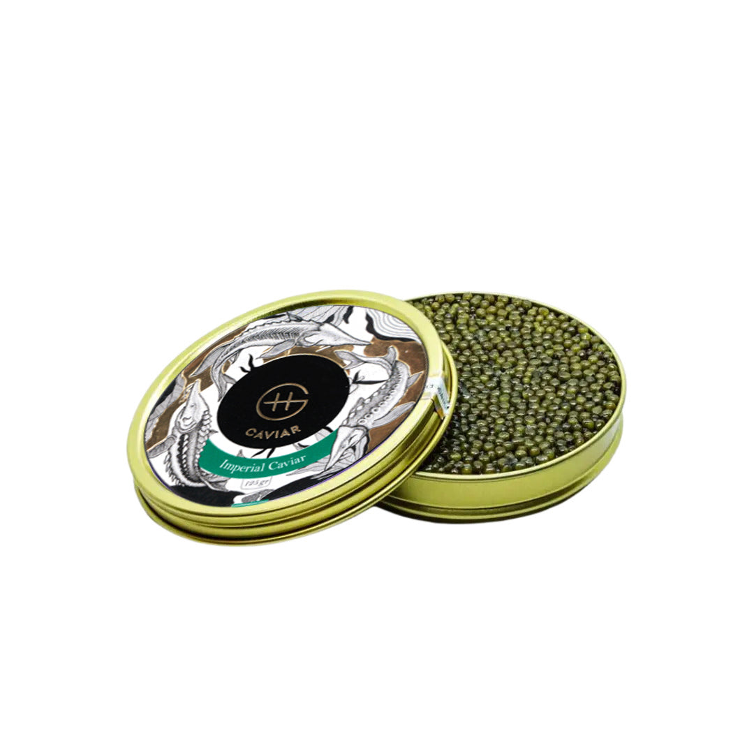 Il colore dei grani ed il suo sapore vi sedurranno. Un gusto deciso, con note freschissime e convincenti, un caviale con grani grandi e brillanti dalle venature smeraldo. Caratteristico sapore. Ottenuto dall' ibridazione Kaluga, Questo caviale è apprezzato per morbidezza e profondità della sua struttura.